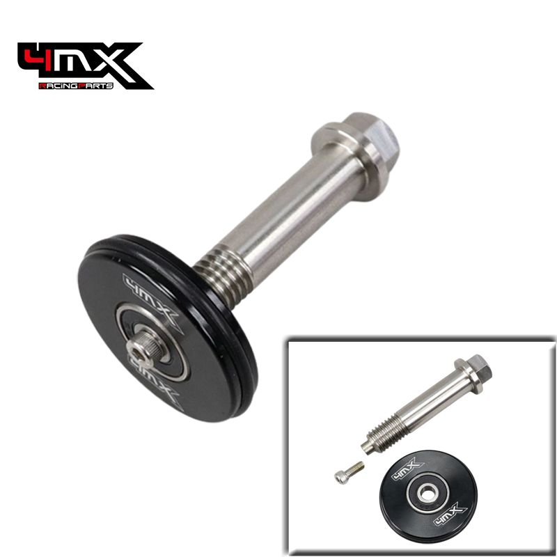 The mud guard mounted on the air filter box rubs and damages the swingarm, especially in muddy conditions. After a while, the material can be so worn out that the swing arm has to be replaced. The 4MX swing arm guard eliminates the problem with a sealed ball bearing and roller that mounts to the lower shock bolt and prevents the mud flap from rubbing. As the rocker moves up and down, the roller runs along the mud flap, keeping it away from the rocker and preventing wear.