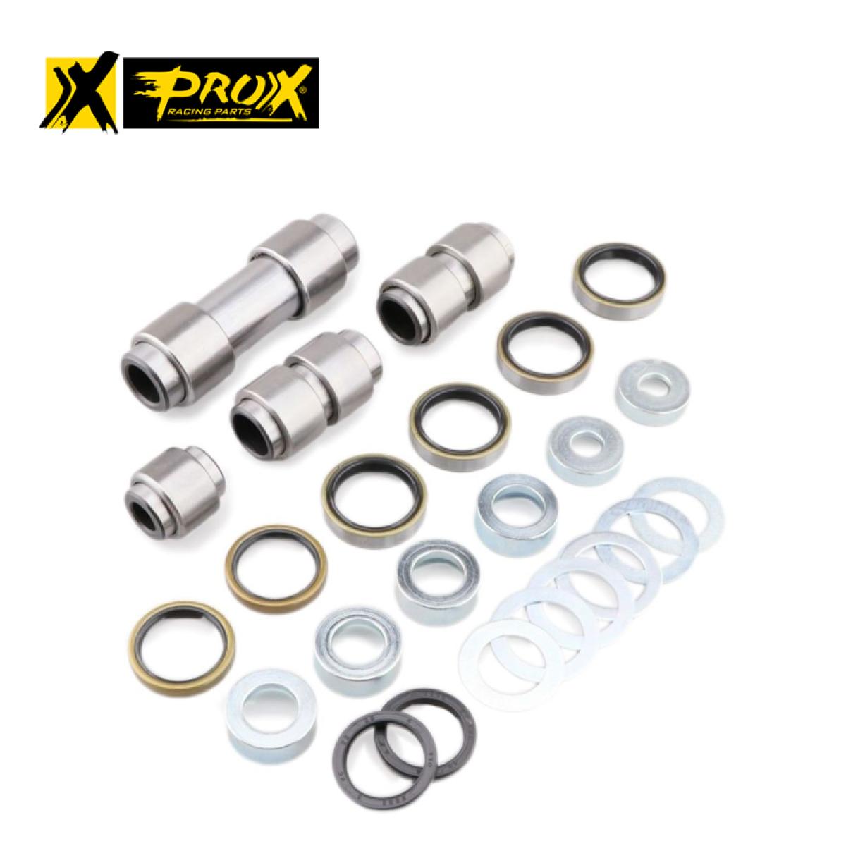 ProX Racing Parts linkage rebuild kits are available for Off Road applications. The complete rebuild kits come with all necessary parts you need to completely rebuild your linkage arms. The shafts supplied are made from 52100 bearing steel and precision ground. Needle bearings are made from 52100 bearing steel, ARC61-65 heat treated and have a ST13 steel shell. Bushings are case hardened and plated to prevent wear and corrosion. All linkage kits include the lower shock bearing kits.