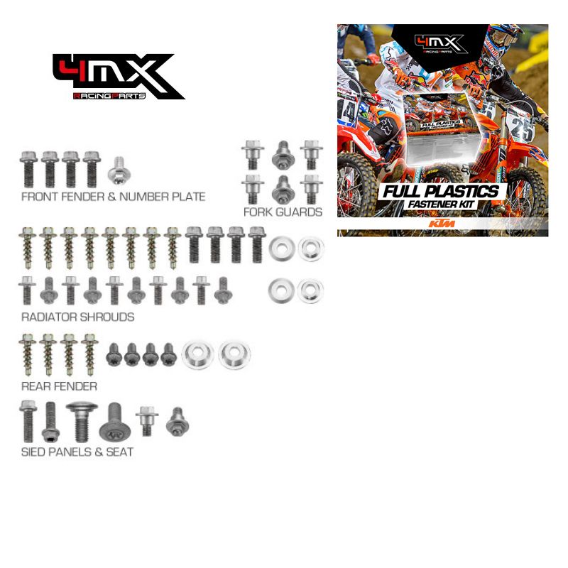 Body Work Fastener Kits contain all the OEM match fasteners and bushings to install your plastics including front and rear fenders, fork guards, radiator shrouds, side covers, and number plates.