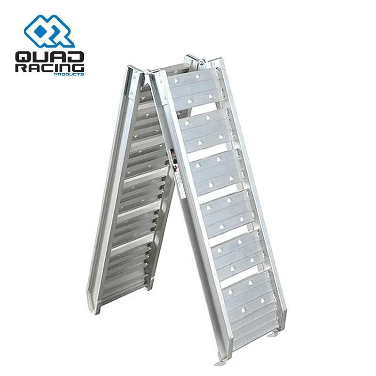4MX Ramps are well-suited to load vehicles or construction machines by quick and safe means. The solid rails are made of light-weighted and high-quality aluminium. Due to their broad surface area and their strong profiling, they are appropriate in humid or slippery areas. Loading and driving up and down is facilitated enormously. Quads, motorcycles, mopeds, etc. can be loaded quickly and without any effort into a trailer or a van. Stairs and other obstacles are overridden without any problem. If not needed, these ATV ramps can be stored in the smallest places thanks to their straight way of construction as well as the folding function.