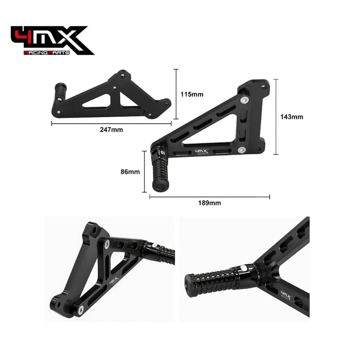 Um kit de pousa-pés concebidos especificamente para passageiros. Estão montados atrás dos apoios para os pés do condutor e podem ser dobrados quando não estão a ser utilizados. São concebidos para transportar passageiros, aumentando o conforto e a segurança dos mesmos.